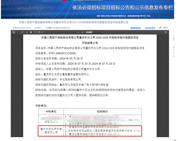| 重慶欣宏達項目管理有限公司中標中國光大銀行股份有限公司重慶分行2025年—2027年招標代理機構入圍項目 |
