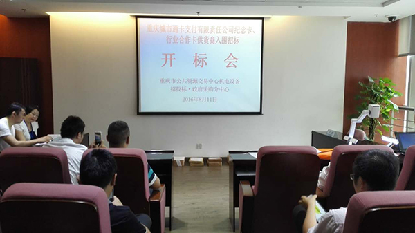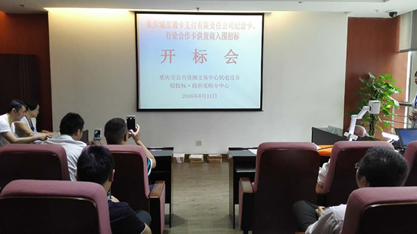 重慶城市通卡支付有限責(zé)任公司紀(jì)念卡、行業(yè)合作卡供貨商入圍招標(biāo)會議于2016年8月11日在重慶市公共資源交易中心機(jī)電設(shè)備招投標(biāo)?政府采購分中心圓滿召開。